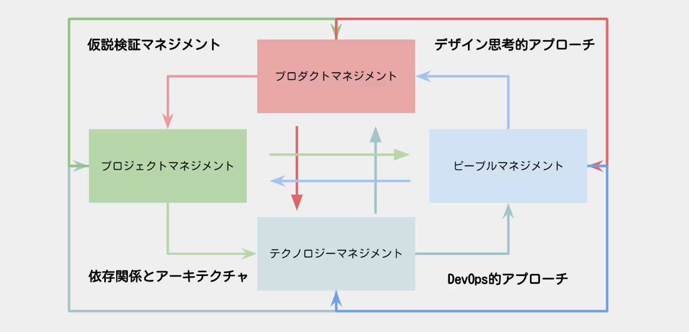 また,広木さんの記事内にもありますが,まずは弱めのEM定義である「ピープルマネジメント」と「テクノロジーマネジメント」から入るのが良いと思います.チームによってはPM(プロダクト,プロジェクト)のロールを担う人がいることが多いため.